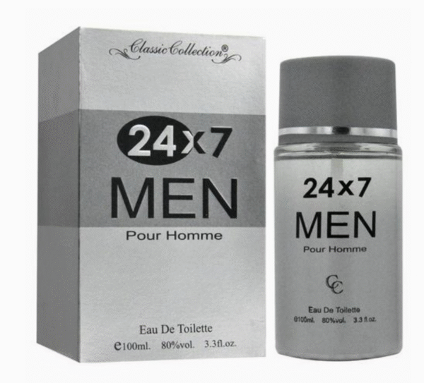 24X7 3.3 oz EDT for Men: A crisp, energizing fragrance for men featuring bright citrus and aromatic spices at the top, transitioning into a fresh herbal heart and settling on a clean woody‑musk base—perfect for daily wear.